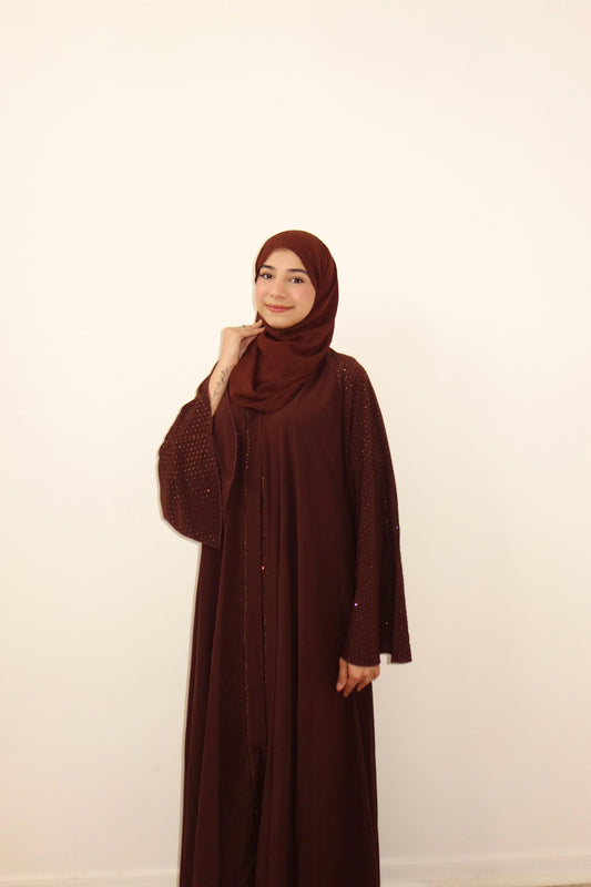 Nour Al-Gulābi Stone Work Fancy Abaya With Stoned Belt And Hijab