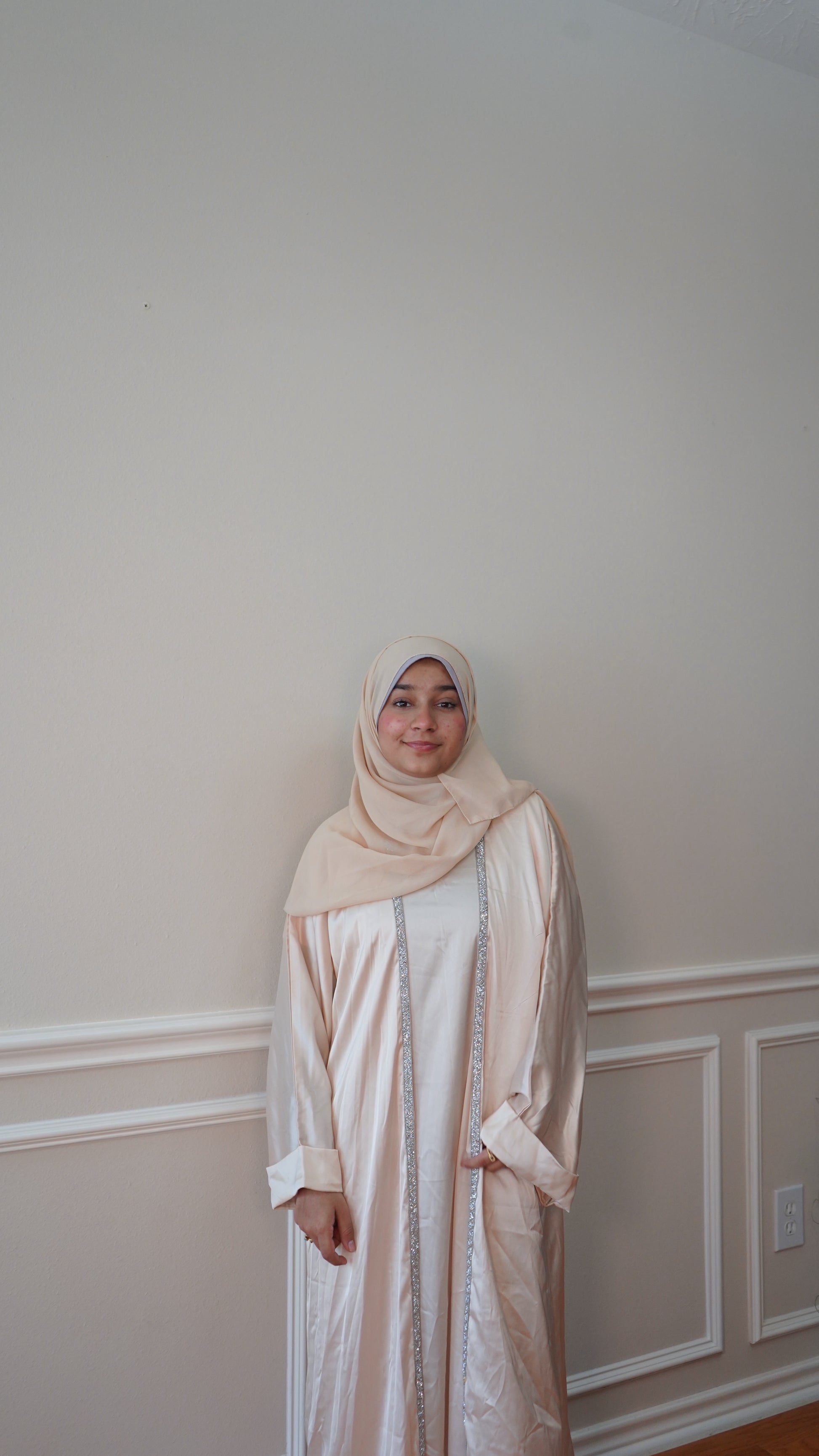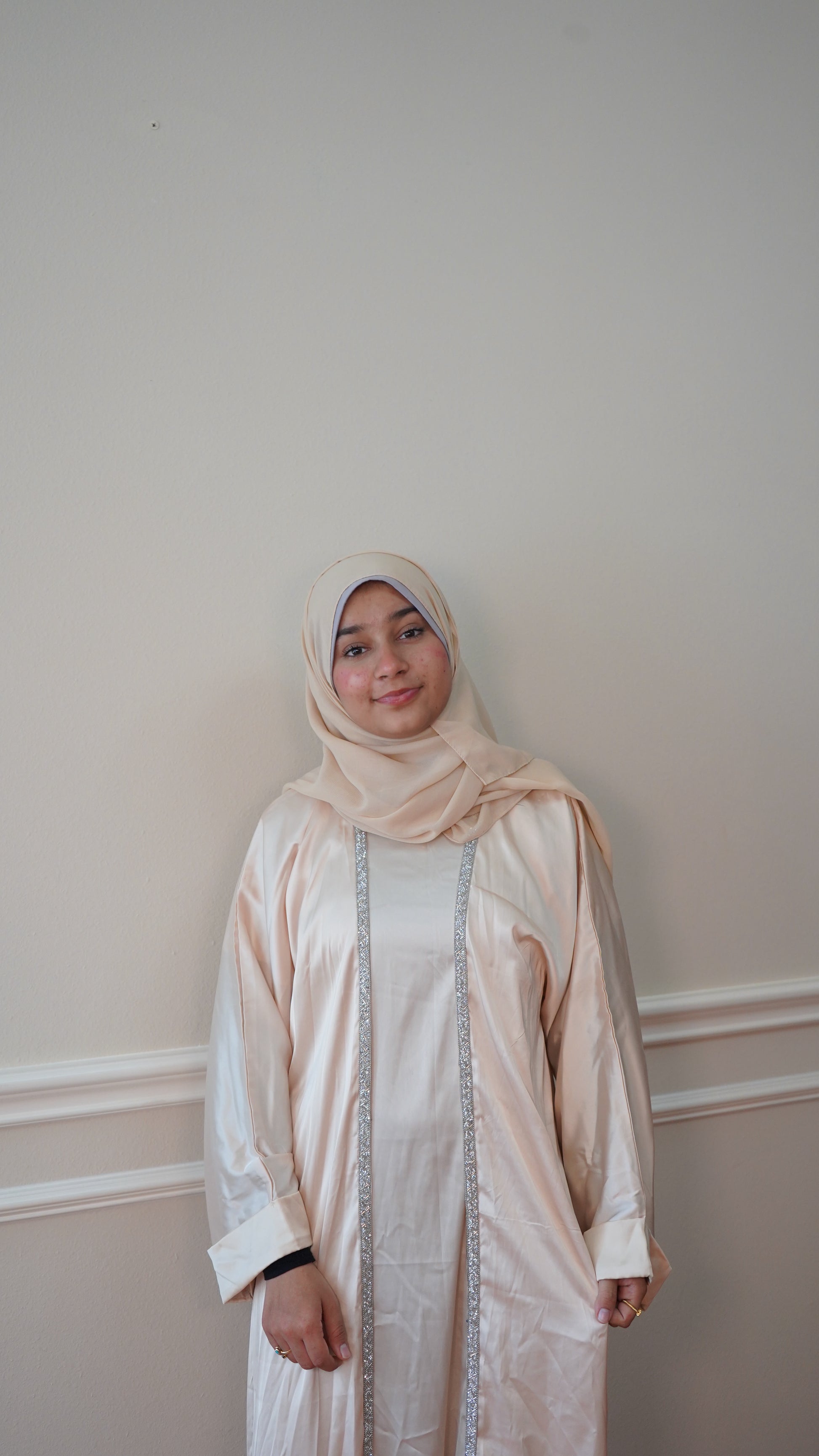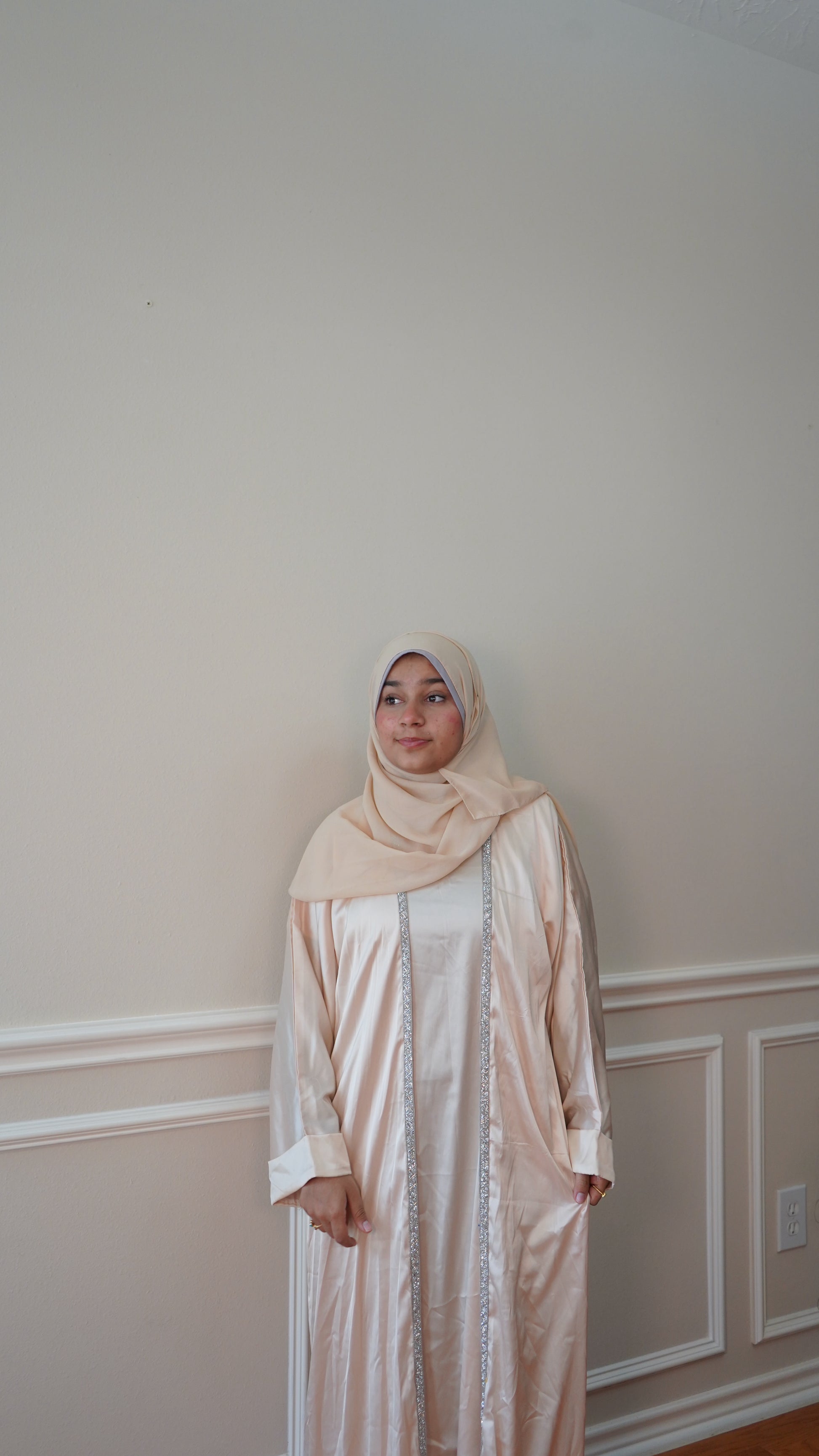 Luxury Satin Beige Abaya 4 Peice With Belt and Hijab